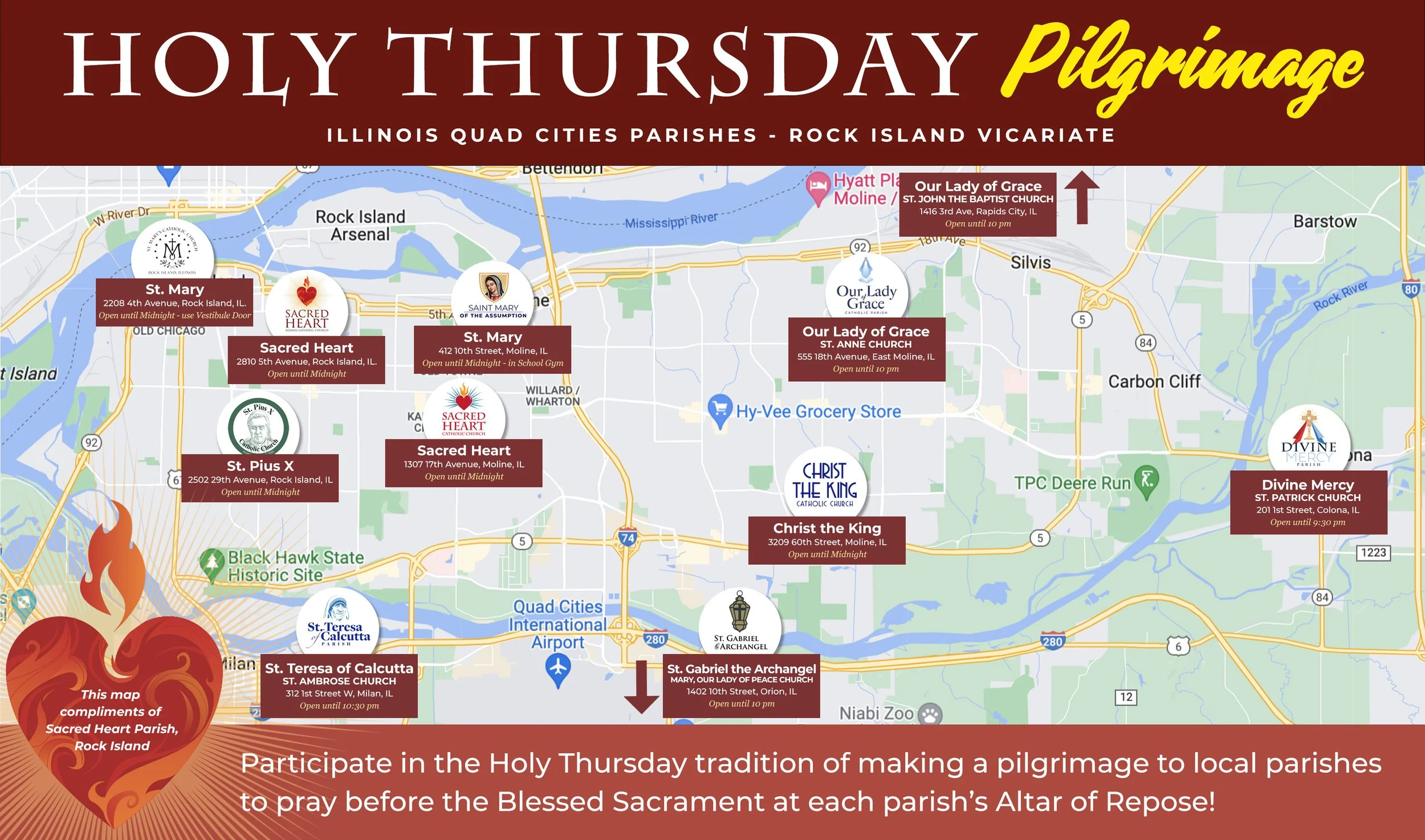 Holy Thursday - 6 pm, followed by Adoration until Midnight